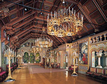 Fue Luis II de Baviera el rey que más marcó lo historia de este lugar. Nació en 1845 en el Nymphenburg (Palacio de las ninfas), sede de la familia real de Baviera, en Munich. Tuvo una esmeradísima educación, claramente influenciada por el Romanticismo, estilo artístico imperante en el momento y que englobaba todas las artes: música, literatura, pintura, arquitectura… El Romanticismo echaba la vista atrás buscando inspiración en el pasado y evocando ambientes épicos, misteriosos y románticos que estimularan la imaginación de los artístas; los románticos veían en ese pasado las raices de su própia sociedad y las mezclaban con las fantasías y las leyendas de un mundo perfecto y onírico. En esta atmósfera se crió Luis, hijo de Maximiliano II, que le dió una estricta educación sabedor que sería quien le sucedería. Se considera que a pesar de haber tenido una buena educación, también debió de estar muy consentido, siendo un joven fantasioso al que, en su adolescencia, le gustaba recorrer los bosques y lagos acompañado de su amigo, y aristócrata, Paul Maximilian Lamoral, que fue su Ayuda de Campo y probable amor platónico hasta que éste se emparejó con una joven de la corte. Se dice que juntos jugaban a leer poesías épicas, cabalgaban por los bosques, representaban escenas de las óperas de Wagner y fantaseaban con las leyendas nórdicas de caballeros y princesas. Con su prima Isabel de Baviera, Luis tuvo una amistad de por vida, ella, más cocnocida como Sissi, fue su gran amiga de la infancia y la adolescencia; juntos paseaban por la naturaleza y en privado se llamaban Águila (Luis) y Cisne (Sissi). Algunos han afirmado, aunque es muy poco probable, que entre ellos hubo un intenso amor, y que por ello Luis rechazó a quien iba a ser su esposa, la princesa Sofía (hermana de Sissi). Esto no sería posible principalmente porque, aunque los originales se perdieron en la Segunda Guerra Mundial y sólo se conservan copias, hay unos diários escritos por el própio rey en donde cuenta su problemática moral al sentirse atraido por distintos hombres del momento, así se conocen varios enamoramientos hacia actores teatrales, jinetes, cortesanos… algo que chocaba de lleno con su moral católica.