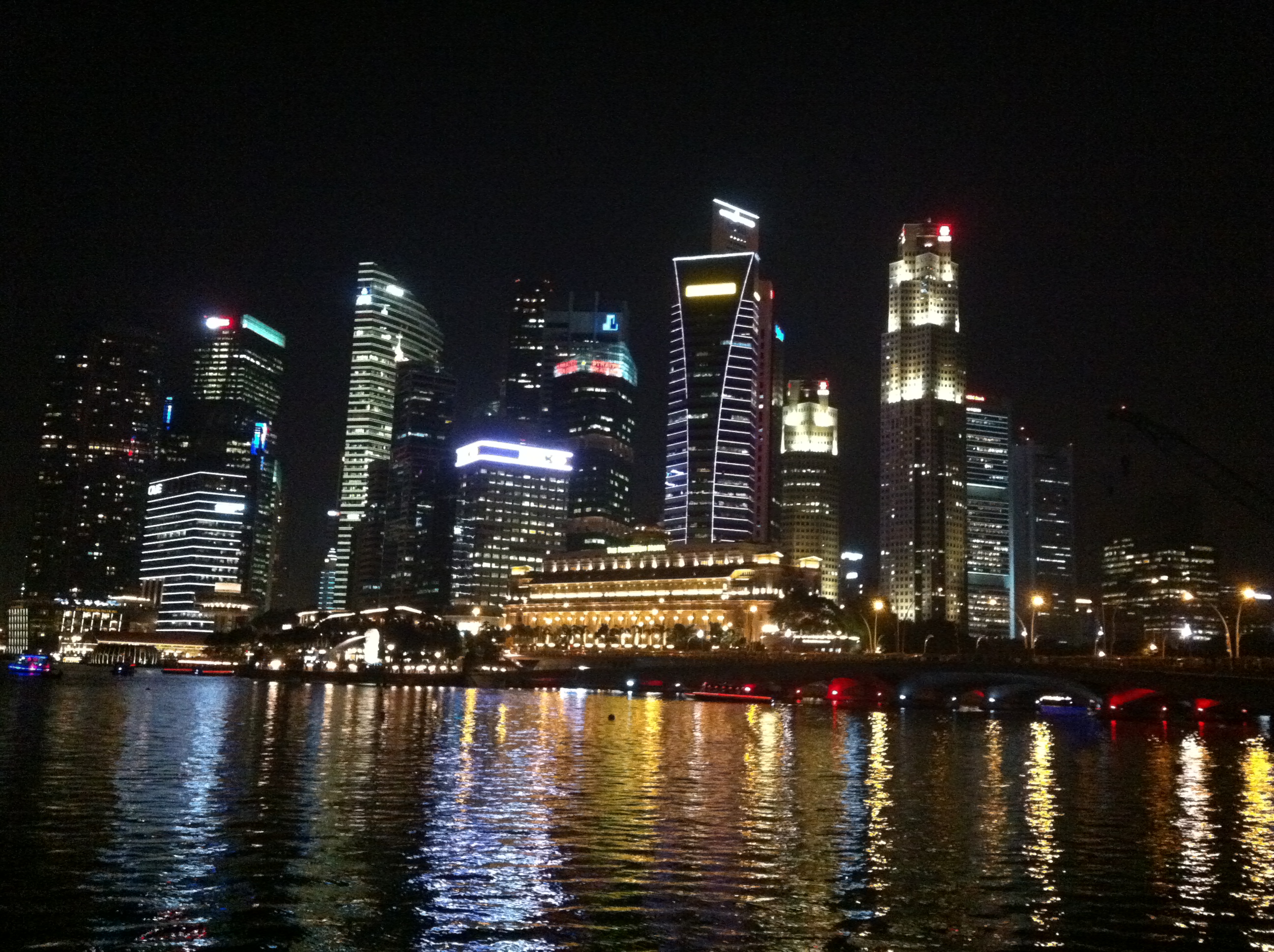 Uno de los lugares más famosos de Singapur es su centro financiero. Muy cercano a lo que es la zona más antigua de la ciudad, en donde hay más edificios coloniales, como el precioso y lujoso Raffles Hotel, es un área llena de rascacielos de distintas alturas y épocas. Es curioso ver como las torres, símbolo del poder de la economía de libre mercado, se apiñan unas a otras. Las más bajas, con una estética más antigua, son las de los años ’70, momento del despegue económico del país, y se mezclan con las ultramodernas y vanguardistas ciudades verticales de acero y cristal; por supuesto todo ellos decorado exteriormente con los colores y neones tan típicos del gusto oriental, y que hace que las ciudades del sudeste asiático casi sean más luminosas de noche que de día.